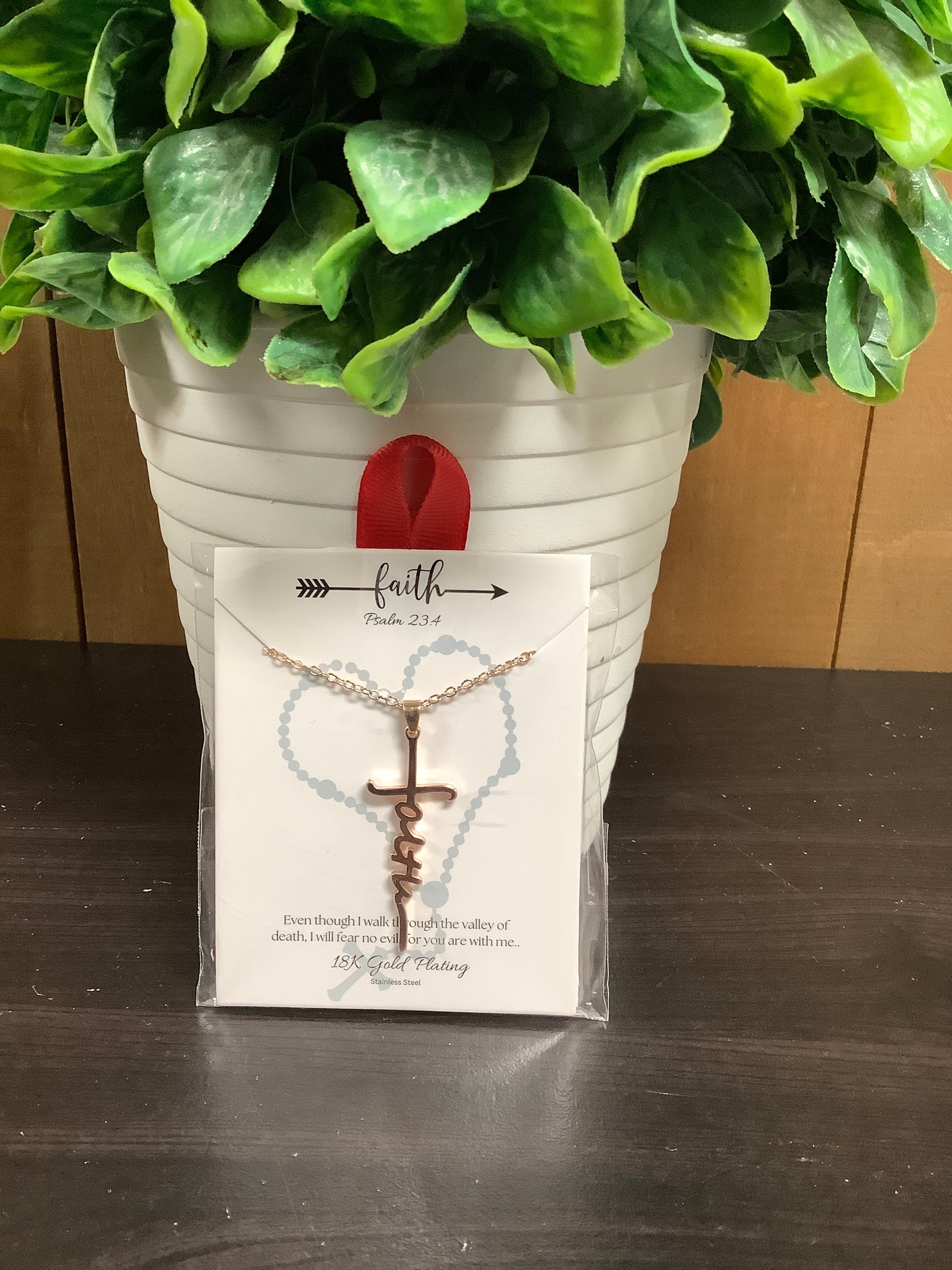 Faith Necklace - Rose Gold - 18K Gold Plating Stainless Steel - 17.5" with a 2" extender