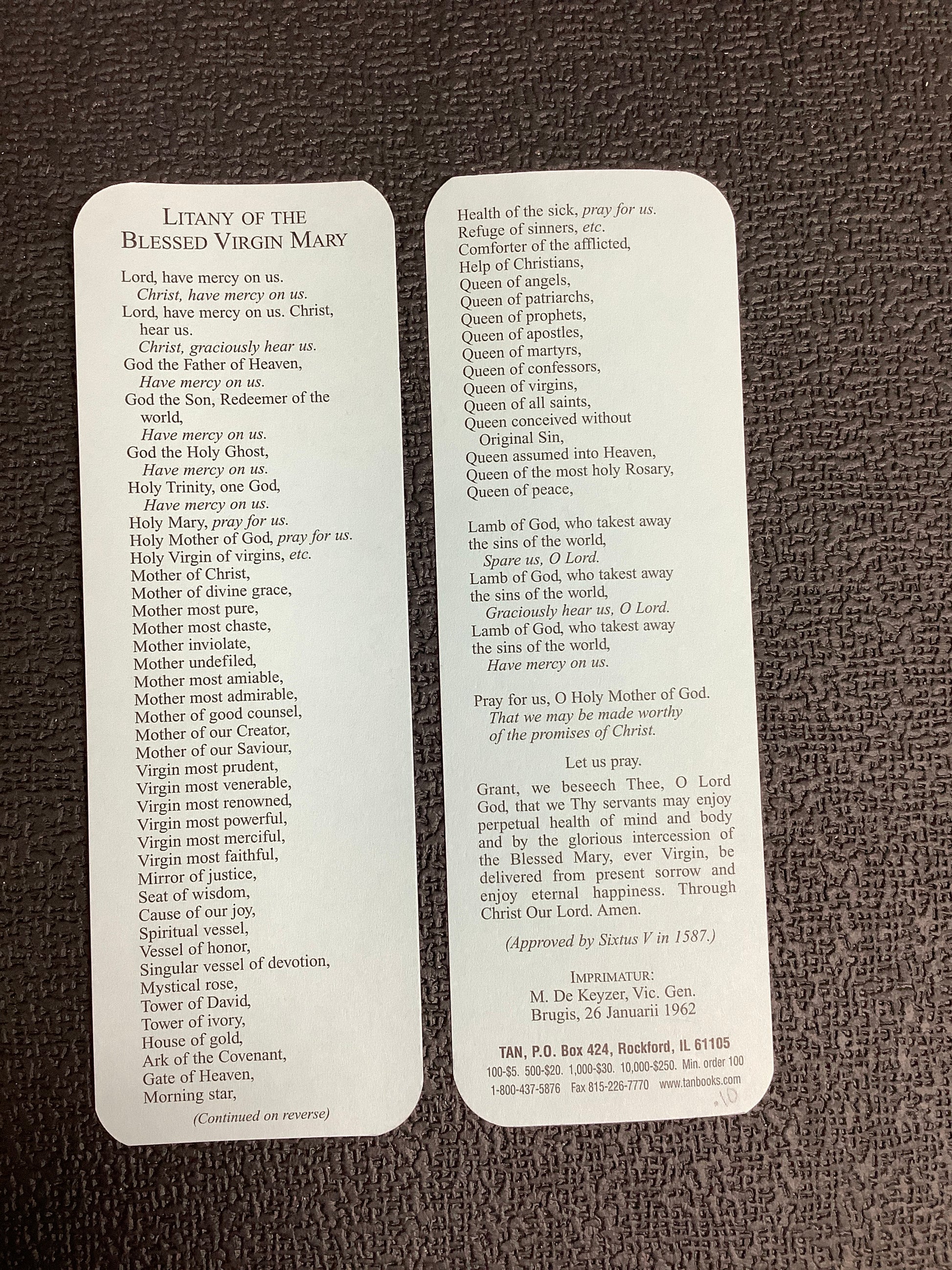 Litany of the Blessed Virgin Mary Bookmark