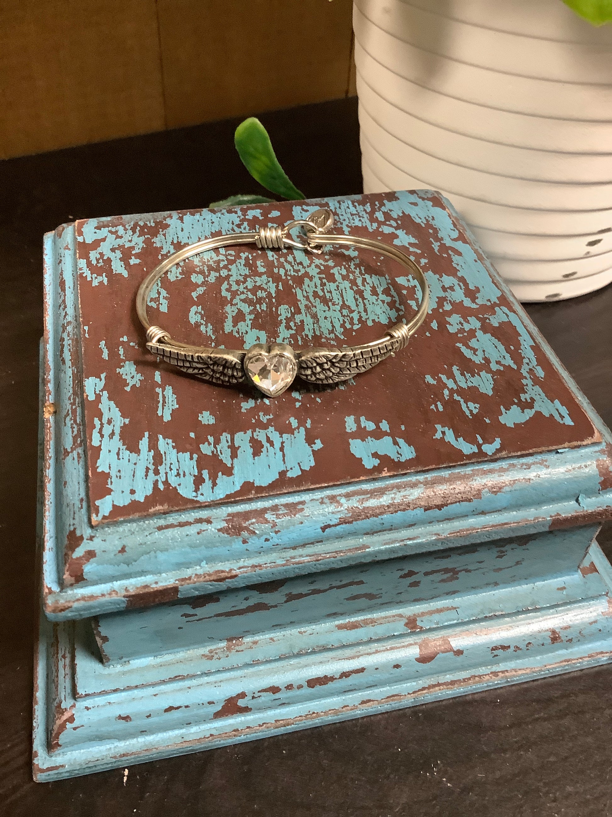 Cherish eternal love with our Forever Love Bangle Bracelet, featuring delicate wings cradling a heart. This bracelet embodies the enduring bond that lifts us to new heights and keeps our hearts intertwined forever.