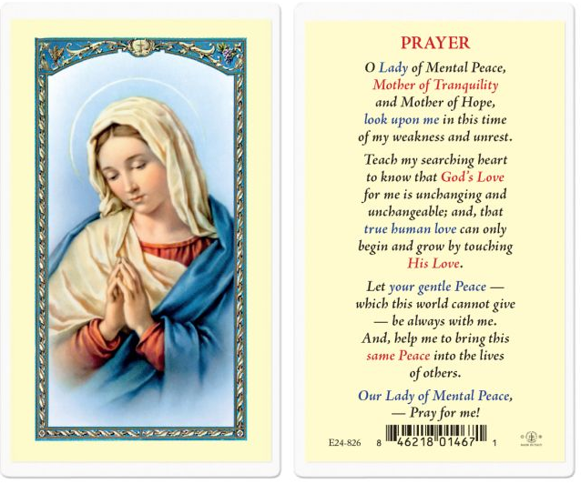 Our Lady of Mental Peace with Blessed Virgen Mary Holy Card