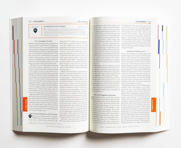 Never miss an important moment in Scripture with 70 key event callouts that provide a brief description of milestones in the biblical narrative