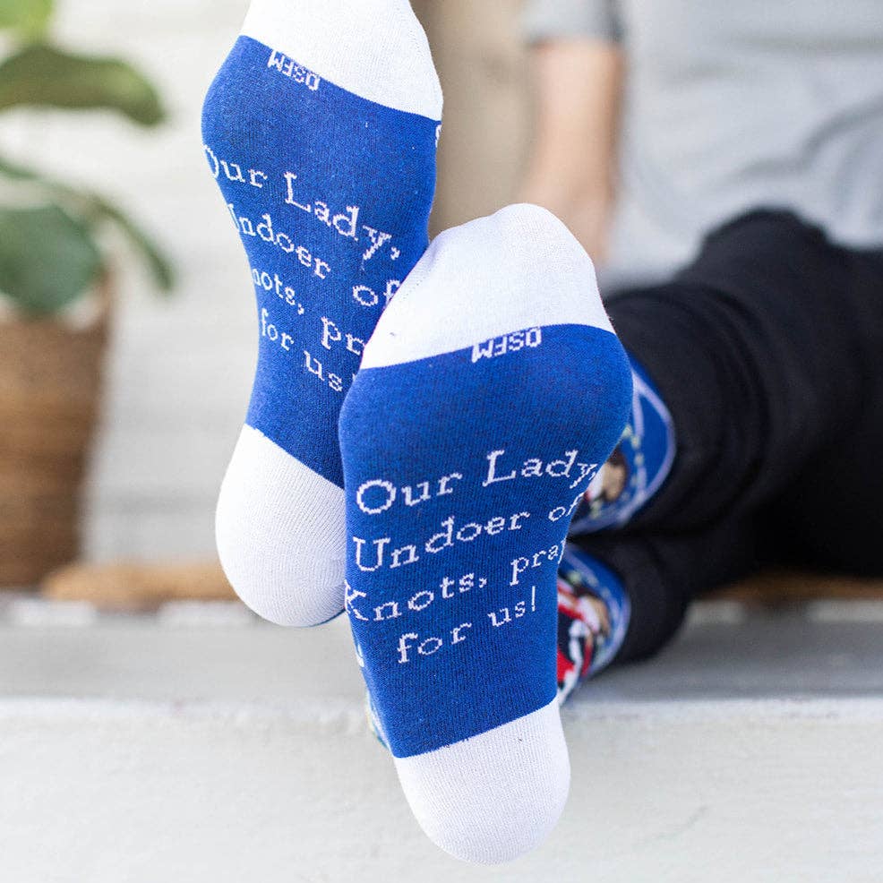 Step into comfort and faith with these Our Lady, Undoer of Knots Adult Socks, inspired by the powerful devotion to Mary as the one who untangles the knots of our lives. Whether you’re facing struggles, seeking guidance, or simply want to honor Our Lady’s intercession, these socks are a reminder that no problem is too big for her loving care.